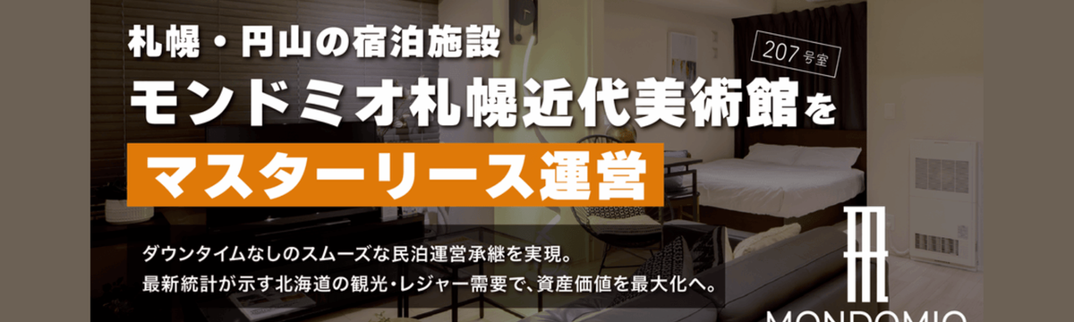 クウカン株式会社 21 days ago Follow Recruiting Kukan データで宿泊ビジネスを動かす。クウカンが札幌・円山で新たな民泊運営をスタートしました 私たちクウカンは、北海道の宿泊不動産を「投資」と「運営」の両面から成長させる会社です。今回、札幌・円山エリアにある宿泊施設 「モンドミオ札幌近代美術館 207号室」 のマスターリース運営を202... Read more