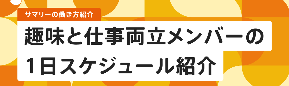 株式会社サマリー over 2 years ago Follow 採用担当 趣味と仕事を両立しているメンバーの1日スケジュール紹介 こんにちは。株式会社サマリーの人事・採用を担当しているカニンガムです。裁量労働制とフルリモートを導入しているサマリーですが、実際の働き方はどうなのか、ご紹介させていただきます!今回は弊社人事チー... Read more