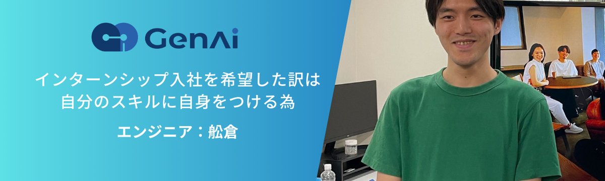 エンジニア紹介 about 1 year ago Follow GenAi 採用・広報 【エンジニアインタビュー vol.2】エンジニアとして更なる自信をつけるために、インターンから挑戦! 皆様こんにちは!GenAiの広報担当です!今回は、インターンのエンジニアとして、その後、正社員としてGenAiにご入社された舩倉さん(ふなくら)さんにインタビューを行いました。ご入社までの経緯や... Read more