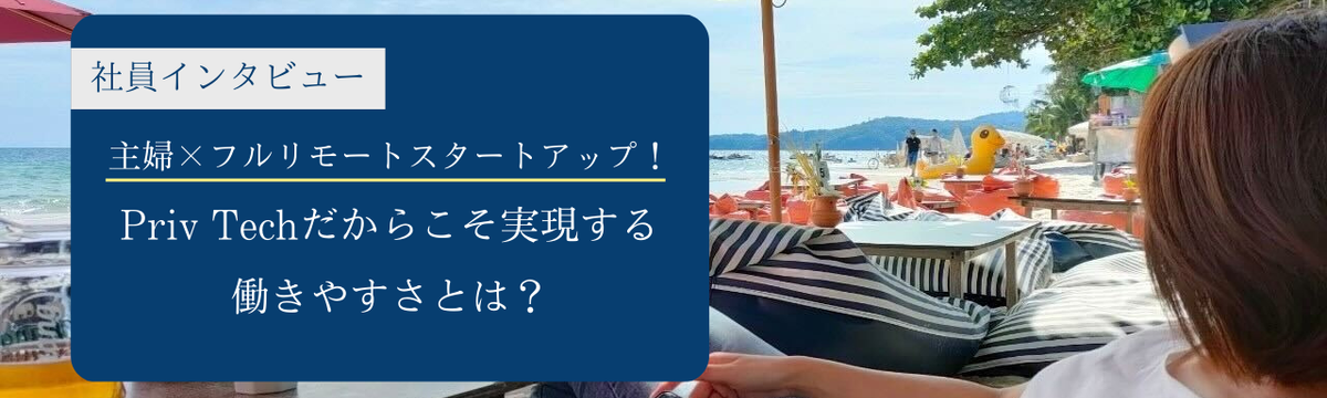 Priv Tech株式会社 over 2 years ago Follow Nana Yamamoto 主婦×フルリモートスタートアップ!Priv Techだからこそ実現する働きやすさとは? こんにちは!Priv Techで採用をお手伝いしている山本です!Priv Techでは、会社の雰囲気や中で働く人について知ってもらうために、メンバーインタビューを実施しています。今回は、バックオ... Read more