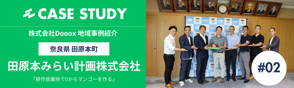 「特命街盛室」事例一覧 3 months ago Follow 坂田 基晴 and 2 others Doooxの地域事例集#2:奈良でマンゴー?、前代未聞の挑戦を行う「田原本みらい計画株式会社」【奈良県田原本町】 奈良県でマンゴーを作るすべては2021年7月、奈良県田原本町の町長(当時)が、設立間もないDoooxに訪問されたことから始まりました。「町の課題を行政だけで解決できない。『特命町長室』として一緒... Read more