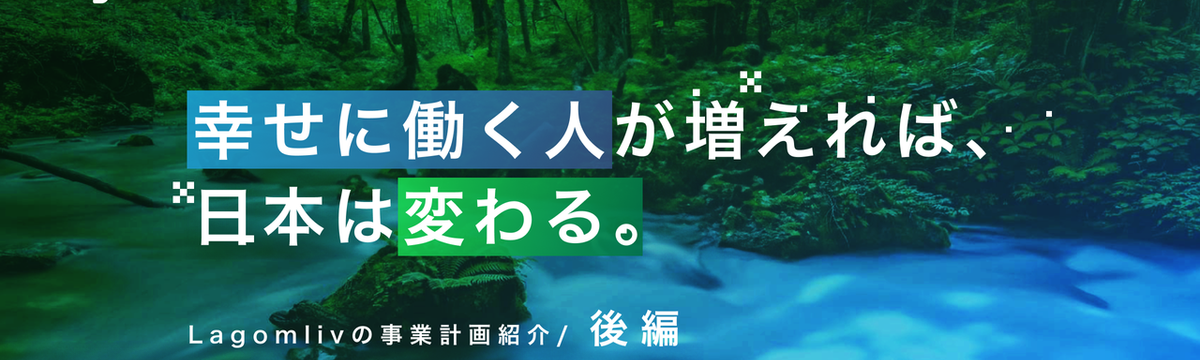 株式会社Lagomliv about 2 years ago Follow Lagomliv 採用担当 and 1 others 【事業計画インタビュー/後編】きれいごとを本気で叶えたい。日本の幸福度を上げるための3つの事業とは 自分自身の最適を探し、幸せを見つけるきっかけを提供しよう──そうした願いから誕生した株式会社Lagomliv。社会全体の幸福度を引き上げるために、3つの事業を立ち上げています。今回は「事業計画イ... Read more