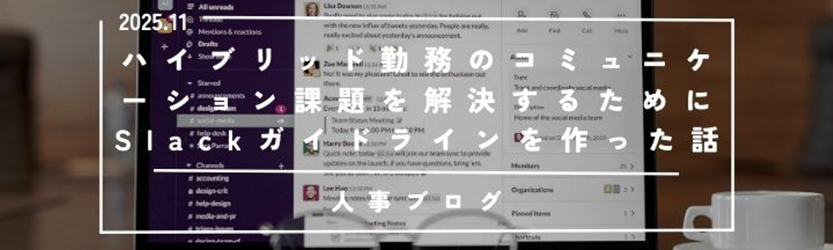 福利厚生・カルチャー 19 days ago Follow バニッシュ・スタンダード 採用広報 【人事ブログ】ハイブリッド勤務のコミュニケーション課題を解決するためにSlackガイドラインを作った話 こんにちは!バニッシュ・スタンダード(以下、VS) 大熊です。最近は気温もぐっと下がり、肌寒さを感じることも増えてきましたね。寒いのは辛いですが、朝の通勤時間の冴え冴えとした空気に陽の光がキラキ... Read more