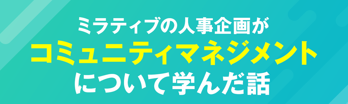 株式会社ミラティブ over 2 years ago Follow てっせい のろ and 1 others ミラティブの人事企画が「オフラインの場づくり」を通じてコミュニティマネジメントについて学んだ話 新型コロナウイルスの流行が始まってから約3年が経過し、世の中の動きがアフターコロナに向かい始めています。ミラティブでのアフターコロナに向けた取り組みと、そこから学んだことについて人事企画の角が語... Read more
