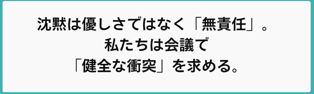 株式会社ハーツネクスト 4 days ago Follow 畑 昌志 沈黙は優しさではなく「無責任」。私たちは会議で「健全な衝突」を求める。 こんにちは、ハーツネクストの畑です。昨今のニュースを見て、大企業の信じられないような不祥事はなぜ起こるのか、と思ったことはないでしょうか?「優秀な人たちが集まっているはずなのに、なぜあんな決断を... Read more