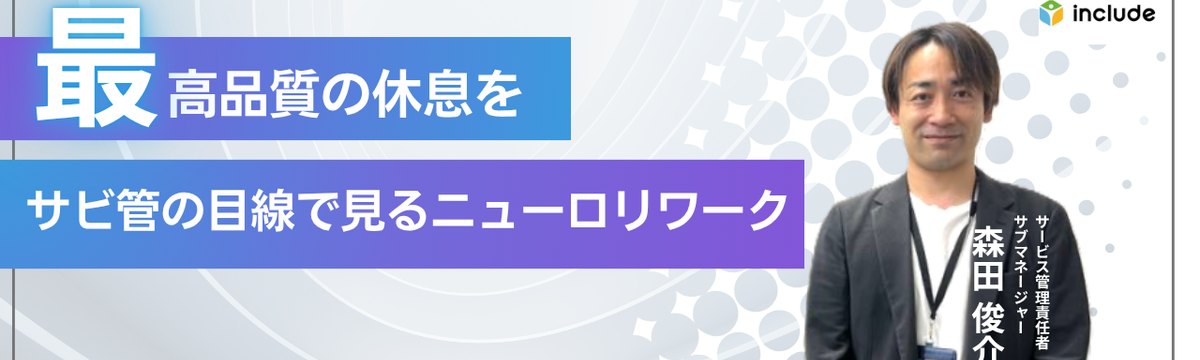 インクルード株式会社 9 days ago Follow インクルード 採用広報 and 1 others 「最高品質の休息とリフレッシュを」サビ管の目線で見るニューロリワーク 「安心して羽を休め、再出発への活力を養える“最高品質のレスパイト(休息)とリフレッシュ”を提供できる場にしたい。」そう語るのは、ニューロリワーク 梅田センターでサービス管理責任者(以下、サビ管)... Read more