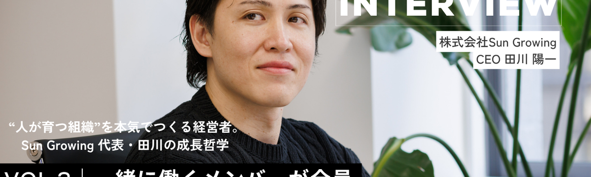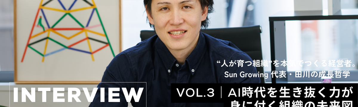 株式会社Sun Growing 14 days ago Follow 吉田 愛 and 1 others 【代表インタビュー Vol.3 Sun Growingの未来】AI時代を生き抜く力が身に付く組織の未来図 こんにちは。ライターの吉田愛です。Sun Growing代表・田川陽一さんのインタビューシリーズも、いよいよ最終回。第1回は、田川さんの原点である野球や起業ストーリーを通して“Sun Growi... Read more