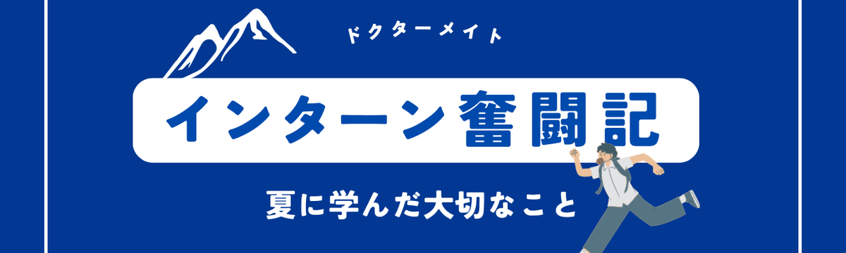 ドクターメイト株式会社 almost 2 years ago Follow 齋藤 太陽 【インターン奮闘記】チームで壁を乗り越えた先に見えたものとは?! こんにちは。ドクターメイト株式会社で内定者インターンをしている新卒2期生の齋藤太陽です!現在は理学療法学科に所属し、2月に行われる国家試験に向けて勉強とインターンの両立に取り組んでいます。今回は... Read more