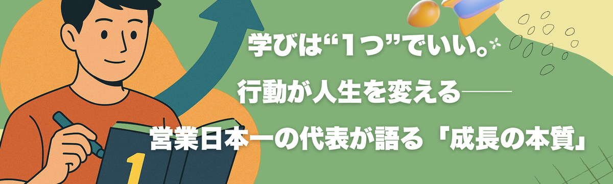 株式会社スポンサーズブースト 2 days ago Follow M K 【学生向け】学びは“1つ”でいい。行動が人生を変える──営業日本一の代表が語る「成長の本質」 こんにちは。スポンサーズブーストの柏崎です。今日は、代表・西里将志のnote『読書は“1つだけ”学べれば良い!!!』をもとに、学生さんに絶対に読んでほしい“成長の本質”についてお話しします。大学... Read more
