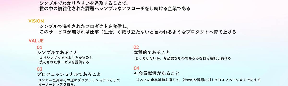 Simfibilitis株式会社 over 3 years ago Follow 今野義仁 弊社のMVVについて こんにちは。Simfibilitisの今野です。最初のストーリーになりますが弊社のMVV(ミッション・ビジョン・バリュー)について書いてみようと思います。まず、弊社のMVVについてページ上部に写... Read more
