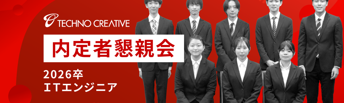 株式会社テクノクリエイティブ 22 days ago Follow 橋本 春香 【2026卒】内定者懇親会レポート!新たな出会いがありました 今回は、2025年10月に福岡で開催された「内定式」と「内定者懇親会」の様子をご紹介します!内定者の皆さんにとっては、“同期と初めて顔を合わせる日”となります!皆さんどんな様子で参加されたのでし... Read more