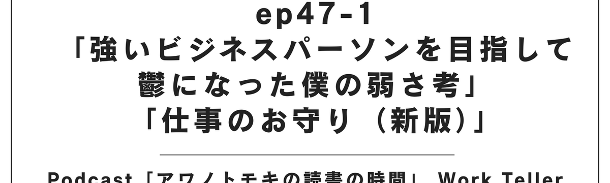 Tomoki Awano 1 day ago Follow Podcast「アワノトモキの読書の時間」 Work Teller ep47-1「強いビジネスパーソンを目指して鬱... Podcast『アワノトモキの読書の時間』 Work Teller ep47-1エピソード紹介秋のはじまり、長袖に変わるちょっとしたその瞬間。スマホからSNSを外し──その代わりに、深く、ちゃん... Read more