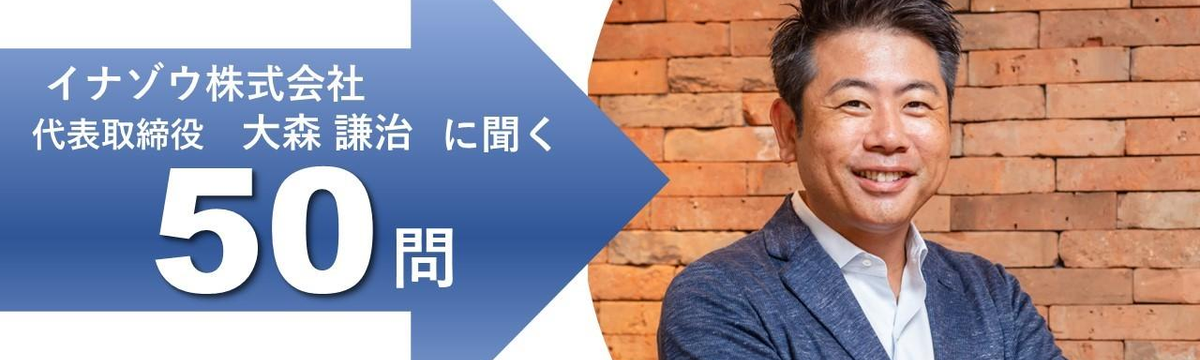 イナゾウ株式会社 almost 2 years ago Follow イナゾウ総務 and 1 others 社長に聞く50の質問~会社のこと こんにちは!イナゾウ総務部です。今回は大森さん(代表取締役)に聞いてみたいことを23卒生にアンケート。集まった質問…50問に答えていただきました!5回に分けてご紹介していきます。初回は「会社のこ... Read more