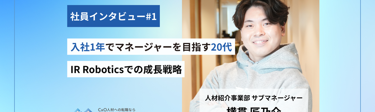 株式会社 IR Robotics 7 months ago Follow 清水 梨奈 and 1 others 入社1年でマネージャーを目指す20代「IR Roboticsでの成長戦略」 「入社1年でマネージャーに昇進する」という目標を掲げ、IR Roboticsに入社した人材紹介事業部の横貫匠乃介さん。目標の実現に向けて経営者と並走しながらコンサルタント業務に励み、わずか”9か... Read more
