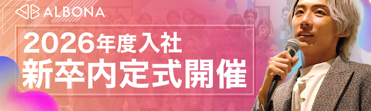 株式会社ALBONA 16 days ago Follow 酒井 伶隆 ALBONA初の内定式開催!!2026新卒 内定式レポート!! 新しい挑戦が、ここから始まる ── ALBONA初の内定式を開催しました2025年10月某日。 東京本社オフィス近くの会場に、緊張感と期待に浮足立つ空気が混じり合った午後。 このたび ALBON... Read more