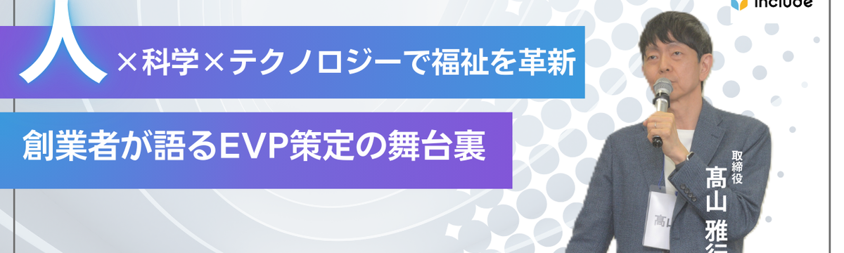 インクルード株式会社 about 2 months ago Follow インクルード 採用広報 「人×科学×テクノロジー」で福祉を革新──インクルード創業者 髙山取締役が語るEVP策定の舞台裏 「私たちは単なる一福祉事業者にとどまらず、この業界に変革をもたらす存在でありたい」そう語るのはインクルード株式会社創業者の髙山取締役。本日は髙山取締役に、EVP策定にいたった背景や目的をインタビ... Read more