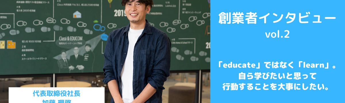 Classi株式会社's Blog almost 2 years ago Follow 田中 沙樹 and 1 others 創業者インタビューvol.2/「educate」ではなく「learn」。自ら学びたいと思って行動することを大事にしたい。 こんにちは。Classi株式会社採用チームです。弊社代表取締役の加藤理啓へのインタビュー第2弾です。📍第1回の記事はこちら創業者インタビューvol.1/私たちは子どもの挑戦を真剣に応援する大人チ... Read more