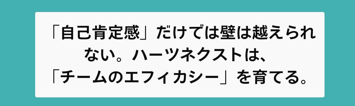 株式会社ハーツネクスト about 1 month ago Follow 畑 昌志 「自己肯定感」だけでは壁は越えられない。ハーツネクストは、「チームのエフィカシー」を育てる。 こんにちは、ハーツネクストの畑です。突然ですが、「エフィカシー」という言葉を知っていますか?エフィカシー(自己効力感)とは、心理学者アルバート・バンデューラが提唱した「自分には目標を達成する能力... Read more