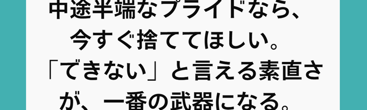 株式会社ハーツネクスト about 2 months ago Follow 畑 昌志 中途半端なプライドなら、今すぐ捨ててほしい。「できない」と言える素直さが、一番の武器になる。 こんにちは、ハーツネクストの畑です。成長が止まってしまう人には、ある共通の癖があります。それは、「自分はそこそこできている」という自己評価です。この「そこそこ」という感覚があるとき、「自己評価」... Read more