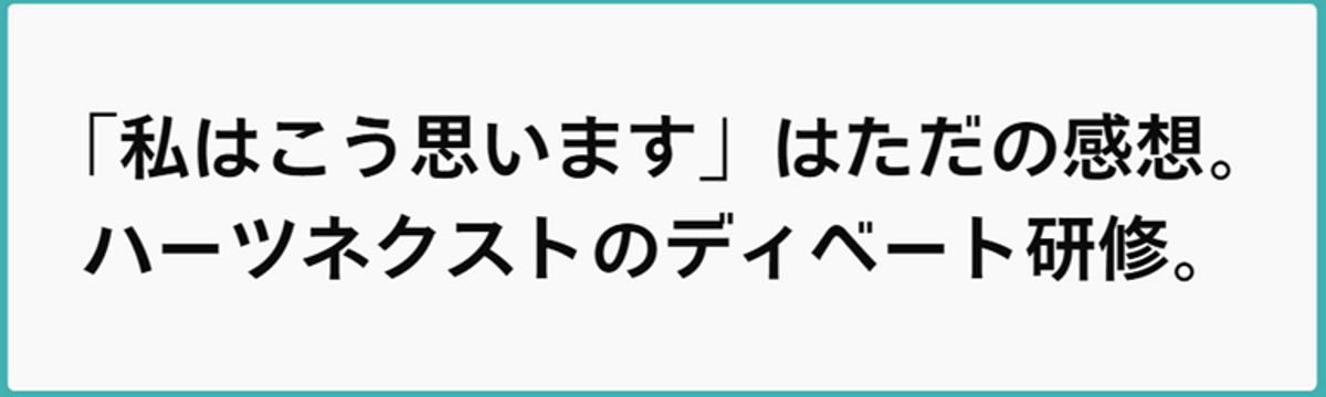 株式会社ハーツネクスト 21 days ago Follow 畑 昌志 「私はこう思います」はただの感想。ハーツネクストのディベート研修。 こんにちは、ハーツネクストの畑です。先日、社内の営業メンバーを集めて「ディベート研修」を実施しました。テーマは「新卒は3年以内に転職すべきか、5年は残るべきか」という、世の中でも意見が分かれる正... Read more