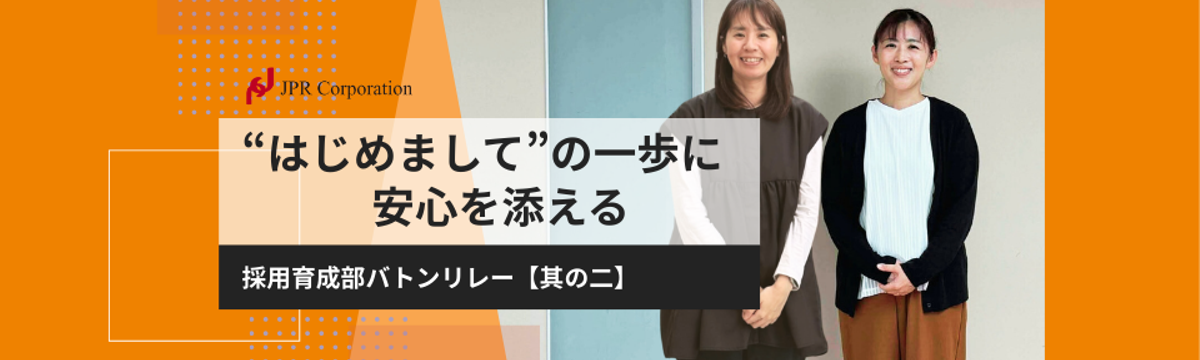 株式会社JPR 3 months ago Follow 蝦名 真裕子 and 1 others はじめまして”の一歩に、安心を添える|採用育成部:バトンリレー【其の二】 バトンを受け取りました、採用窓口を担当している、蝦名と本多です。「ここなら安心できそう」「相談してよかった」そんな言葉をもらえる瞬間が、私たちにとって一番のご褒美です🌸これから出会うすべての“は... Read more