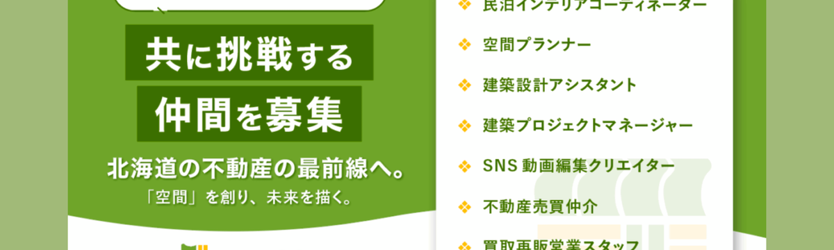 クウカン株式会社 21 days ago Follow Recruiting Kukan 北海道の不動産・民泊事業の最前線で、あなたの力を発揮しませんか? 私たち クウカン株式会社 は、北海道の富良野・札幌・倶知安エリアを中心に、不動産事業と民泊事業を展開しています。「空間を創り、価値を循環させる」という理念のもと、地域の魅力を最大化しながら、新し... Read more