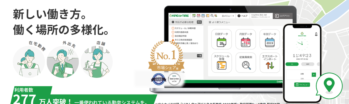 お知らせ over 2 years ago Follow 源田 千聡 and 1 others 【ITreview Grid Award】勤怠管理システム「KING OF TIME」が最高位の「Leader」を... こんにちは!人事採用担当の源田です。今回は当社が提供するクラウド勤怠管理システム「KING OF TIME」についてご報告があります。この度、「KING OF TIME」は「ITreview G... Read more