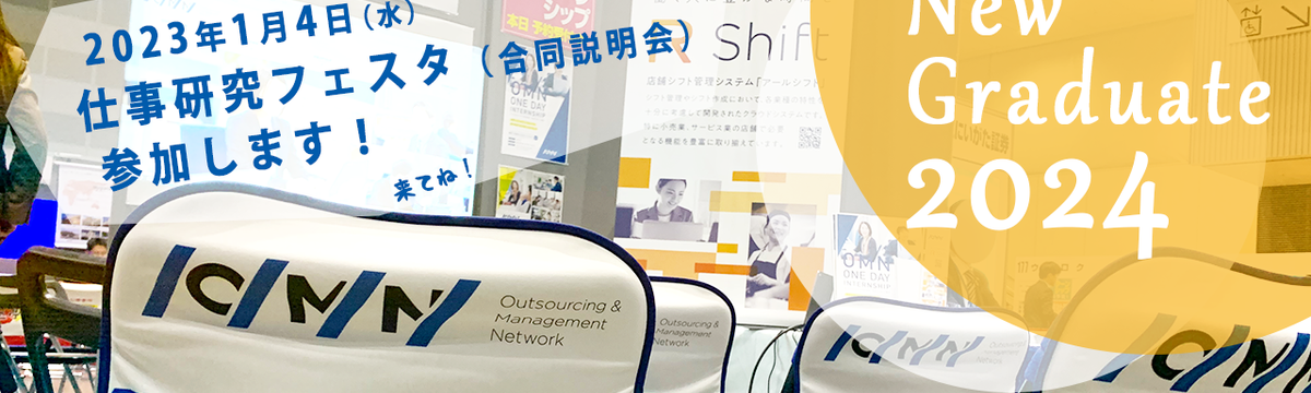 オーエムネットワーク株式会社 almost 3 years ago Follow 栗原 朋子 and 1 others (24卒)1月4日の合同説明会に参加します!【人事のつぶやき221228】 こんにちは。オーエムネットワークの人事担当、栗原です。今年最後の更新となります。オーエムネットワークは年末年始の12/29~1/3までお休みとさせていただきます。今年、1回でも記事を読んでいただ... Read more