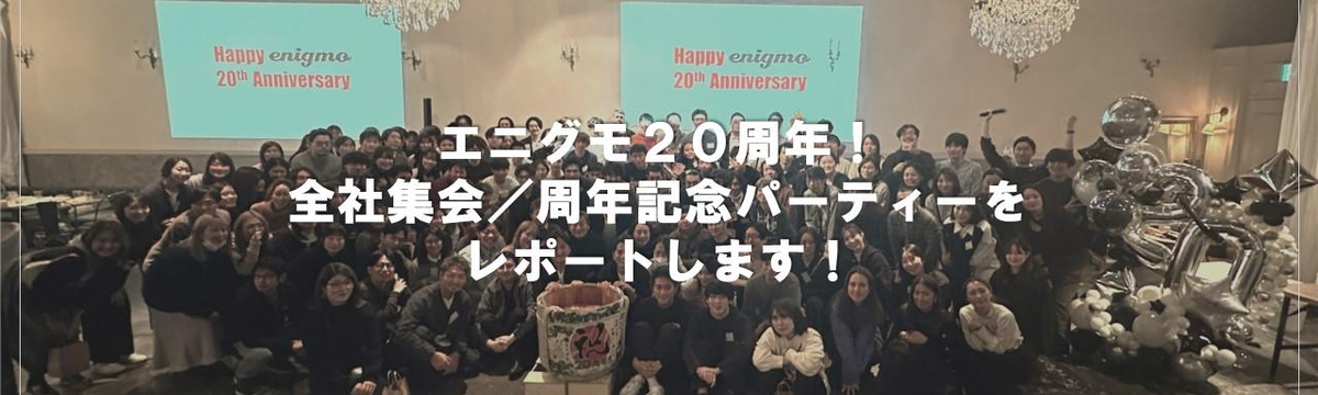 enigmo culture over 1 year ago Follow エニグモ採用チーム and 1 others エニグモ20周年!全社総会/周年パーティーをレポートします! こんにちは。エニグモで採用や、採用広報を担当している戸井です。エニグモは2024年2月10日に創立20周年を迎えました。そして、記念すべき20周年をお祝いするため、完全オフラインでの全社集会・2... Read more