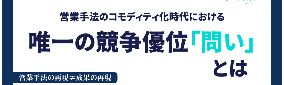 株式会社アスレバ 14 days ago Follow 大場 和佳 営業手法のコモディティ化時代における、唯一の競争優位としての「問い」 情報が溢れ、AIが数秒で「売れるトークスクリプト」や「ターゲットリスト」を提示する現代において、営業における「手法(やり方)」の価値はかつてないほど暴落しています。そんな時代に、私たち株式会社ア... Read more