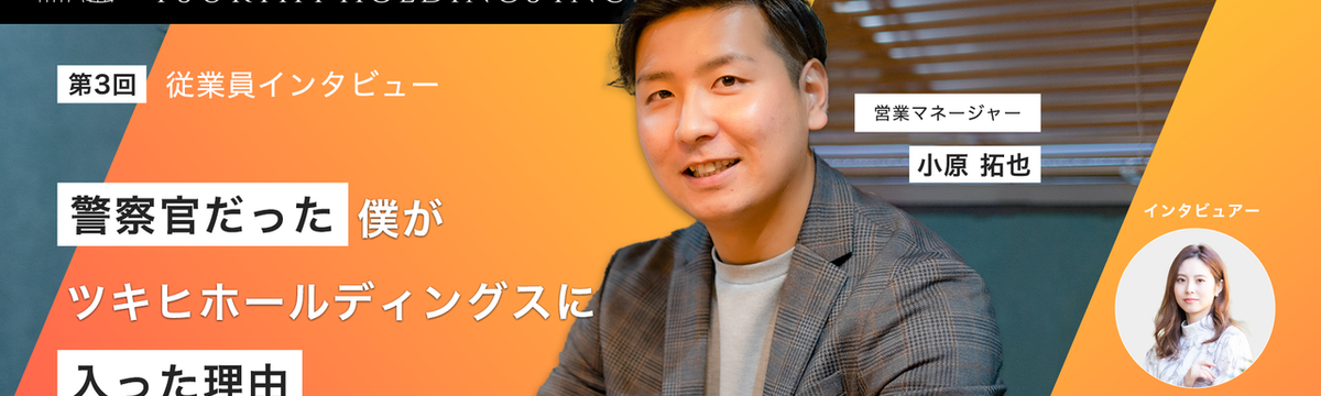 ツキヒホールディングス株式会社 over 3 years ago Follow 小原 拓也 and 3 others 警察官だった僕がツキヒホールディングスに入った理由。 ”警察官になると決めた日”こんにちは!ツキヒホールディングスのフィジカル担当小原です。警察官からベンチャー企業に転職した異色の経歴で、社内では"ポリス"と呼ばれています。僕がなぜ、警察官になろう... Read more