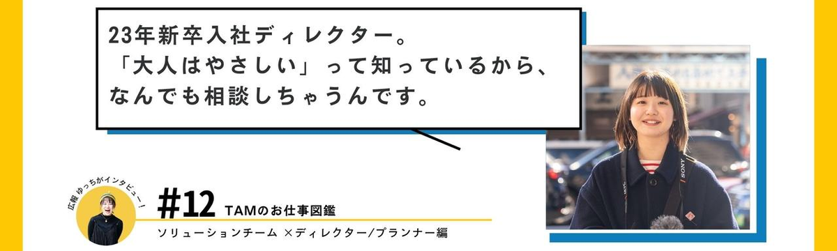 TAMのお仕事図鑑 6 months ago Follow yukino watanabe and 1 others 「大人はやさしい」って知っているから、なんでも相談しちゃうんです。23年新卒入社ディレクター 名和さんインタビュー TAMメンバーにインタビューする「TAMのお仕事図鑑」シリーズ。今回は2023年に新卒入社し、今年で3年目を迎えるディレクター/プランナーの名和ちゃんに話を聞きました。地域おこし協力隊で、埼玉県... Read more