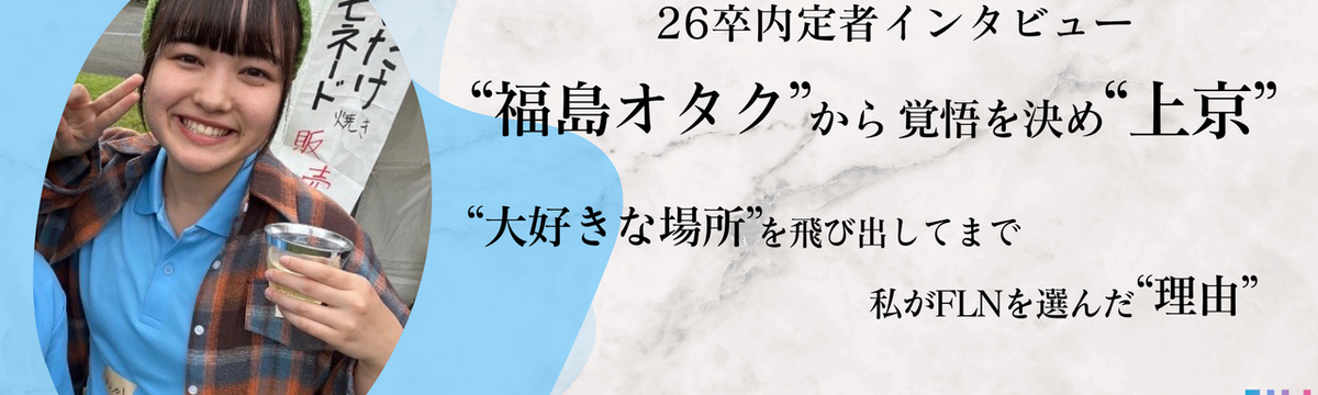 株式会社フューチャーリンクネットワーク about 1 month ago Follow 石川 慈英 【26卒内定者インタビュー】福島オタクから覚悟を決め”上京”。大好きな場所を飛び出してまで、私がFLNを選んだ”理由” こんにちは!株式会社フューチャーリンクネットワーク(以下FLN)採用チームの酒井です。今回は、26年卒内定者インタビュー第五弾として、福島が大好きな”福島オタク”の坂田さんにお話を伺ってきました... Read more