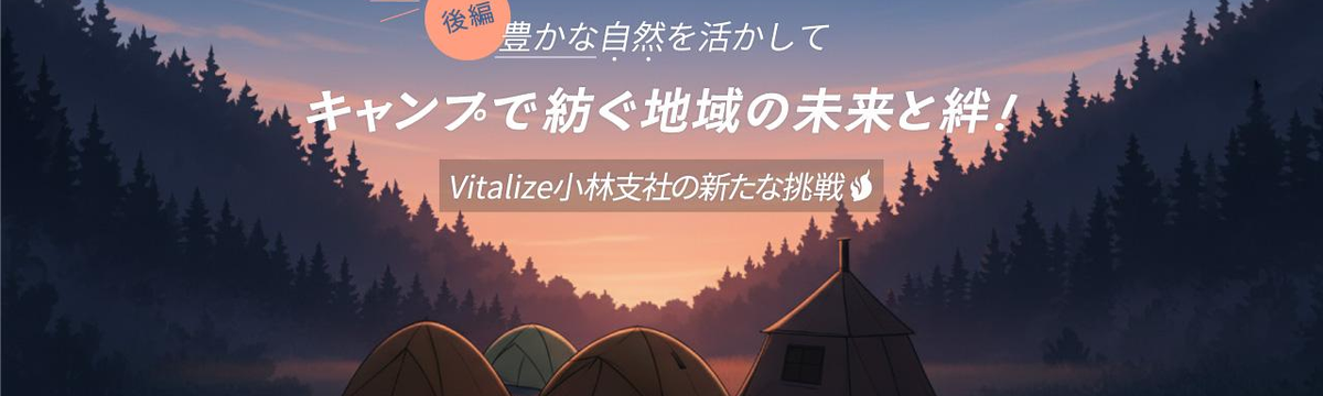 株式会社Vitalize about 18 hours ago Follow 前原 由衣 and 8 others 【後編】豊かな自然を活かして──キャンプで紡ぐ地域の未来と絆!Vitalize小林支社の新たな挑戦 こんにちは!小林支社 広報担当の前原と申します。(以下、前とする)前編では、キャンプを軸にVitalize小林支社が目指す未来像や、地域との関わりについてご紹介しました。そして後編となる今回は、... Read more
