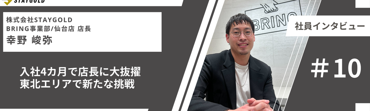 STAYGOLD's INTERVIEW almost 2 years ago Follow 加来 千畝 【社員インタビュー】#10 入社4カ月で店長に大抜擢。東北エリアで新たな挑戦 / BRING こんにちは!人事戦略室の加来です。今回の社員インタビューでは、弊社BRING事業部に入社後、わずか4カ月で新店舗の店長に就任された幸野 峻弥(こうの しゅんや)さんとお話しさせていただきました!... Read more