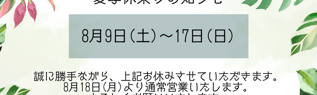 お知らせ about 3 years ago Follow 小松 奏恵 and 1 others 夏季休業期間について 採用担当の小松です。本年の夏季休業についてのお知らせです。誠に勝手ながら、下記期間中はお休みとさせていただきます。2022/8/11(木)~2022/8/15(月)該当期間中にいただきましたお問... Read more