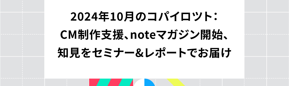 株式会社コパイロツト 11 months ago Follow PR Team COPILOT プロジェクトリーダー同士、失敗談やその乗り越え方を共有...ほか、10月の活動まとめ こんにちは!コパイロツト情報発信です。10月の私たちの活動情報まとめをブログに公開しました!主なトピックは...メンバーによるnoteマガジンの更新がスタート人材確保と外部リソースとの連携のコツ... Read more