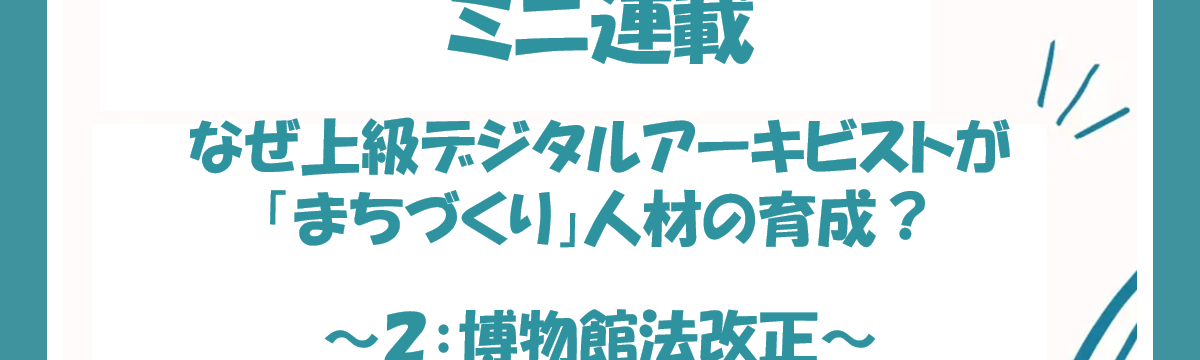 Masahiro Houtoku over 2 years ago Follow なぜ上級デジタルアーキビストが「まちづくり」人材の育成? 〜第2回:博物館法改正〜 こんにちは。上級デジタルアーキビストの寳德真大(ほうとく まさひろ)です。今回は第2回目となります。1:問題提起2:博物館法改正 ←← 今回はココ!3:サステナビリティ"という経営課題をどう考... Read more