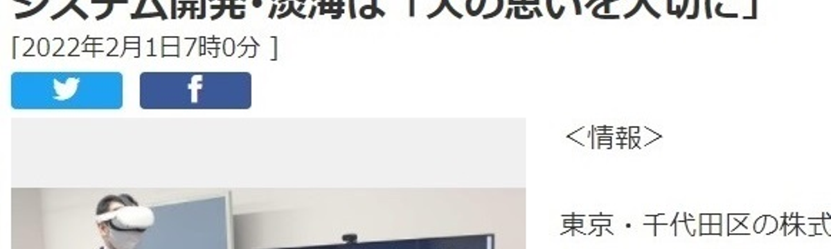 長尾研児 over 3 years ago Follow 定着率が高いため「転職者に薦めたい企業」として日刊スポーツの「ニッカン4356情報」欄(2022/2/2(水))に... 定着率が高いため「転職者に薦めたい企業」として日刊スポーツの「ニッカン4356情報」欄(2022/2/2(水))に弊社が掲載されました。弊社の様な小さな会社が誰かの目に留まるというのは嬉しいです... Read more