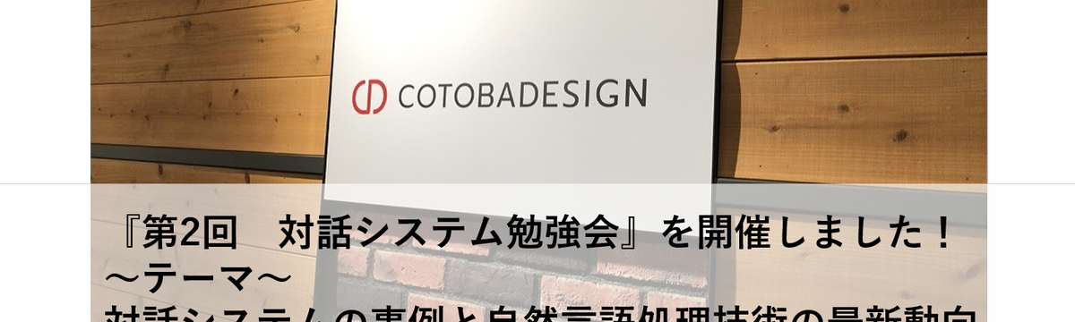 株式会社コトバデザイン almost 5 years ago Follow 渡邊 小百合 【第2回 対話システム勉強会開催】当日の様子をお伝えします! コトバデザイン では、12月16日(水)に『第2回 対話システム勉強会』を開催いたしました!当日の講演の様子は こちら をご覧ください。株式会社コトバデザインとは・・・世界中のクリエイターがAI... Read more