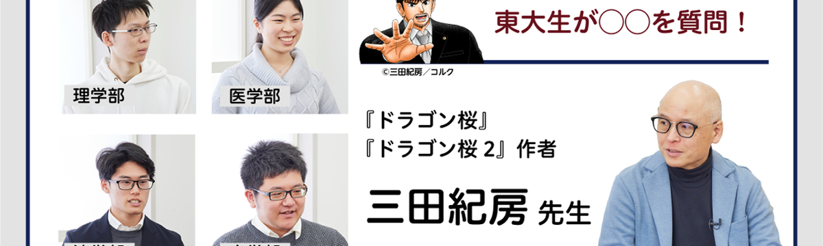 株式会社カルペ・ディエム 11 months ago Follow 石橋 康志郎 and 1 others 『ドラゴン桜』三田紀房先生と特別対談 「東大に行け!」〜受験がもたらす成長と未来とは〜 大人気漫画『ドラゴン桜』『ドラゴン桜2』(講談社)の作者、三田紀房(みた・のりふさ)先生と、『ドラゴン桜2』の編集を務めた西岡壱誠(にしおか・いっせい)が対談!入試方法が多様化する昨今の大学受験... Read more
