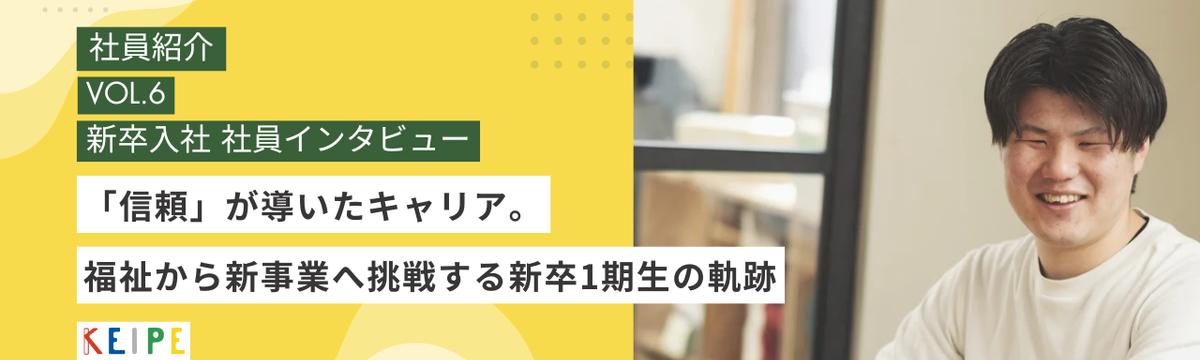 KEIPeople 8 months ago Follow Daichi GOTO 【社員インタビュー】福祉から新事業へ挑戦する新卒1期生の軌跡 こんにちはこんばんは!KEIPE株式会社 採用担当の後藤です!私たちは「障がいを特別なものにせず、誰もがそこに居ていい社会」を目指して事業を展開しています!このコーナーでは、KEIPEの最前線で... Read more