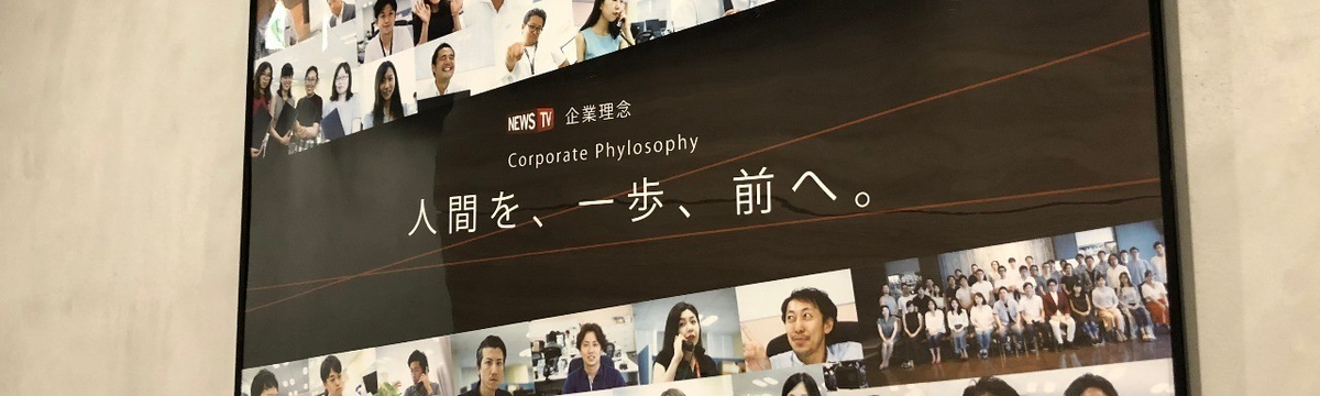 NewsTV 広報blog about 7 years ago Follow Yoko Sakai and 1 others 広報blog_経営理念のポスターつくりました! こんにちは。NewsTV広報のさかいです。今回は、NewsTVの経営理念についてご紹介したいと思います。NewsTVの経営理念は、「人間を、一歩、前へ。」です。現在は「動画」×「テクノロジー」の... Read more