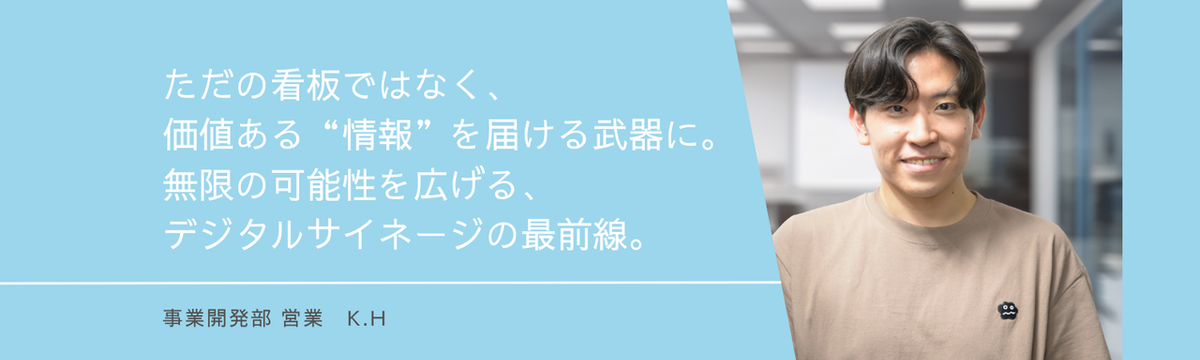 株式会社MADS about 1 month ago Follow MADS 人事 【社員インタビュー/事業開発】ただの看板ではなく、価値ある“情報”を届ける武器に。無限の可能性を広げる、デジタルサ... ✨社員インタビュー第1弾✨今回は 事業開発部 営業担当のK.Hさん にお話を伺いました!― 現在担当している仕事について教えてください事業開発部では自社開発のデジタルサイネージ配信システム「MO... Read more