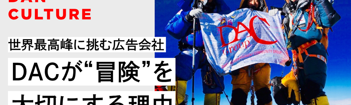 イベント&カルチャー about 1 month ago Follow 徳永 智子 世界最高峰に挑む広告会社──DACが“冒険”を大切にする理由 こんにちは!デイリースポーツ案内広告社の上山です。今回は、DACグループのちょっと変わったプロジェクト「DACセブンサミッツ」と、そこに込められた想いについてご紹介します。突然ですが、皆さんは「... Read more