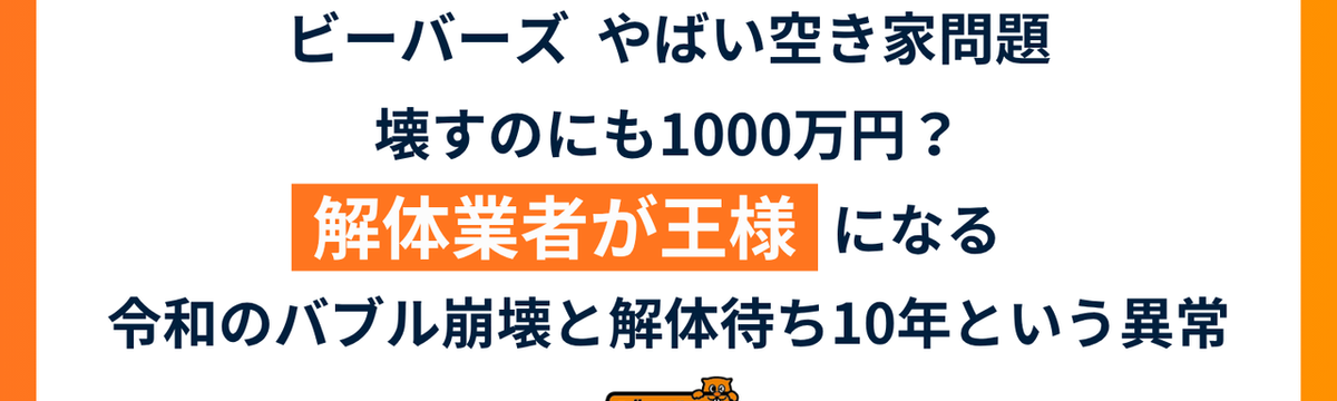 株式会社ビーバーズ 3 days ago Follow 梅原 栞奈 ビーバーズ やばい空き家問題 壊すのにも1000万円?解体業者が「王様」になる、令和のバブル崩壊と解体待ち10年... 第1章:1000万戸の「負債」が日本を飲み込む日皆さんは、ご実家や親戚の家が将来どうなるか、真剣に考えたことはありますか?「いつか相続して、売ればいいだろう」「古くなったら壊して更地にすればいい... Read more