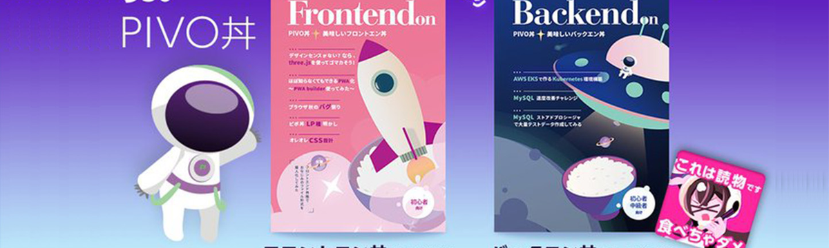 株式会社PIVOT about 6 years ago Follow Chinatsu Oba 「技術書典7 」にPIVOT技術書典部が再び参加します! 今年の春に開催された「技術書典6」において大好評完食御礼となった『フロントエンドごった盛本 PIVO丼』からさらにパワーアップしてなんと今回は…★「Frontendon」初心者(90p/¥1,0... Read more