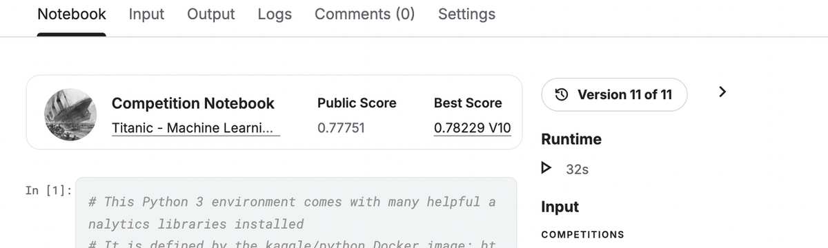 上田 冬真 3 days ago Follow Kaggle初挑戦 最近はAI学習やコーディングに興味があるので少し前に「Kaggle」という機械学習・データサイエンスのコンペや学習ができるオンラインプラットフォーム兼コミュニティの中にある「titanic」とい... Read more