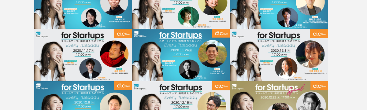 for Startups / PR Team blog about 5 years ago Follow for Startups, Inc. 採用 and 1 others 【10月開始より約2ヶ月】フォースタートアップス、9名の挑戦者たちのリアルをお聞きしました! こんにちは。フォースタートアップスPRの友行です。10月より開始したオンラインラジオ配信「CIC LIVE」でのフォースタ番組「for Startups-スタートアップ、挑戦者たちのリアル」です... Read more