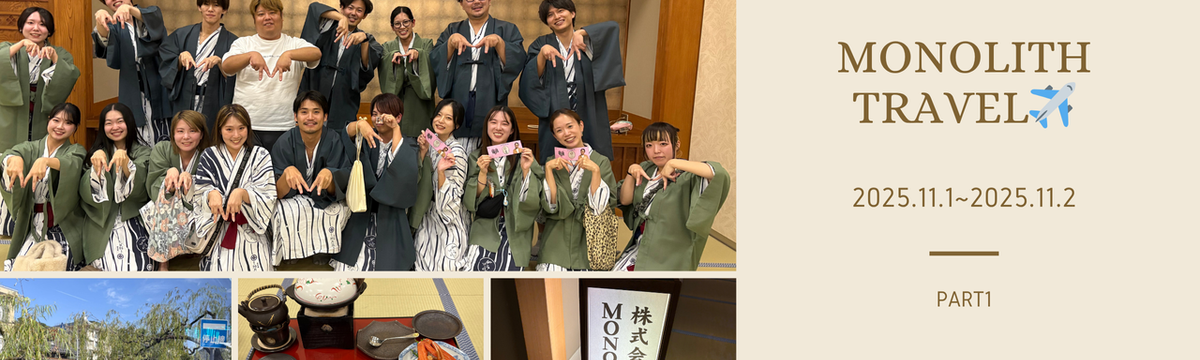 株式会社MONOLITH 1 day ago Follow 大林 夏海 2025年度社員旅行 in 城崎温泉 part1 こんにちは!大林です!11月の初めに1泊2日の社員旅行に行ってきました~~その様子をお伝えできればと思います!今年の行き先は、城崎温泉です♨去年までは家族参加OKだったのですが、今年から社員の人... Read more